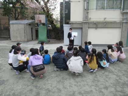5年生は学級ごとに、新しい友達と担任の先生と顔合わせを行いました。明日以降の予定や靴箱の場所についての連絡があり、配布物を受け取りました。