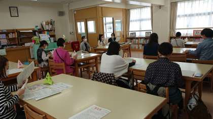 今日は、10時から図書館で目の教室の保護者会を開催しました。