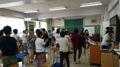 音楽では、ピアノに合わせて1から5のリズム打ちをして仲間を探していきました。