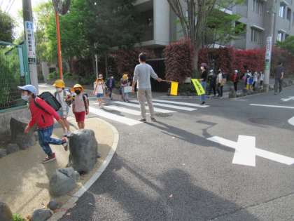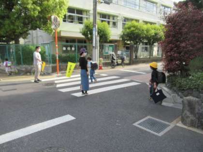 子どもたちの登校時の安全確保と見守り・指導を、保護者の皆様が通学路の各ポイントで行ってくださっています。「おはようございます!」と声をかけ、子どもたちに横断時の安全を指導してくださっています。ありがとうございます。