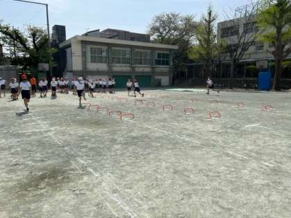 4/13 5年生 体育「体ほぐしの運動・陸上運動」