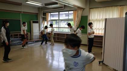 体育着に着替えて多目的室へ行きます。