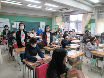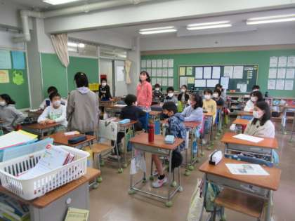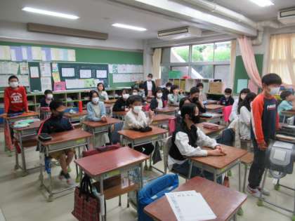 6年生は、委員長さんの他は教室で集会に参加しました。委員会の活動内容が紹介された後、委員会のメンバーが紹介されましたが、学級内での各委員会の仲間が紹介されると、互いに大きな拍手を送り合っていました。
