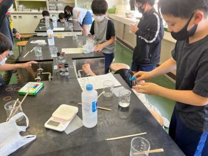 今日の科学クラブでは、スライム作りに挑戦しました!どんな材料が必要なのかな?ホウ砂など、初めて聞く言葉もあったと思います。分量をきちんと量っていざ挑戦!色鮮やかなスライムがたくさんできました。スライムならではの感触に子どもたちからも笑顔が見られました。これからも、科学を楽しみながら活動していきます!★