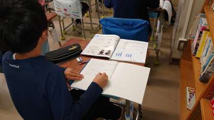 子どもたちは、担任の話をしっかり聞いて、自分の考えや友達の考えを整理して学習活動を進めていました。