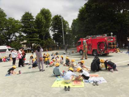 2年生は2回目のはたらく消防の写生会で、「去年と違う車にしたよ!」「2回目だから周りの様子もかけたよ!」と教えてくれました。