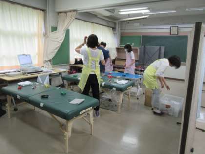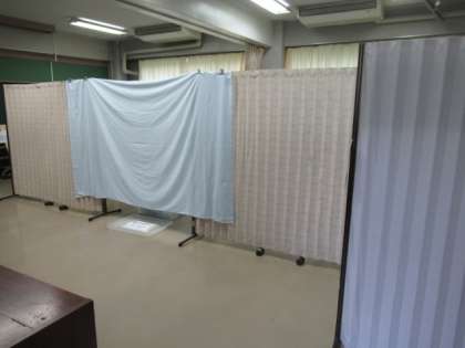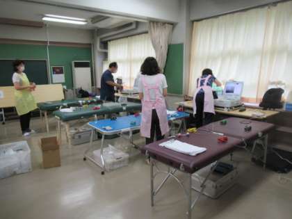 1年生・4年生と転入生を対象とした心臓検診が、南校舎2階の多目的室で始まりました。早朝から検査機関のみなさんが準備をしてくださっています。