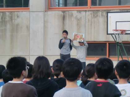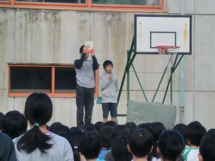 本日の児童朝会では、6年生が自分が気に入っている本の紹介と毒きのこについてお話してくれました。読書の秋、食欲の秋、いろいろな秋を楽しめる時期ですね。