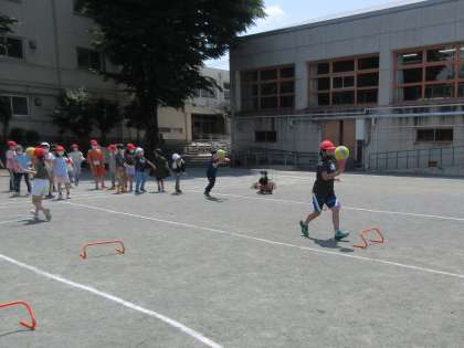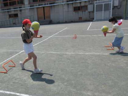 1度体育で取り組んでいたので、上手に運べる子がたくさんいました。