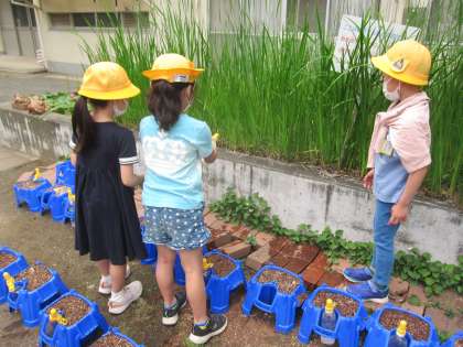 昼休み、「せんせい、もうめがでたか、みにいっていいですか?」