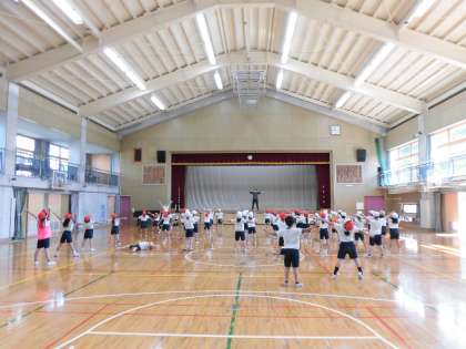 運動会の団体演技「7☆Beats」の練習を頑張っています。今週は、まず振り付けを最後まで通して覚えることを目標に取り組みました。先生が前でお手本を踊らなくても、掛け声だけでできるようになってきました。