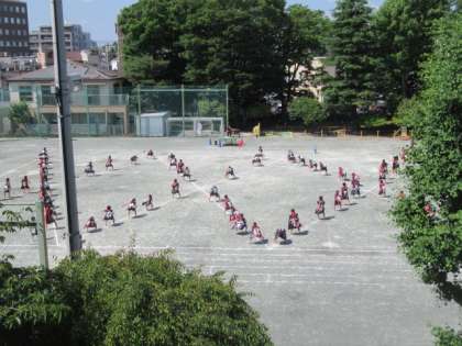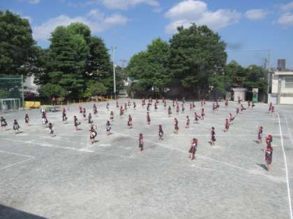 *写真は体育館2階と北校舎3階から撮影しました。運動会当日の演技全体のイメージの参考にしてください。