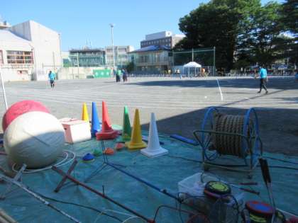 今年度の「運動会」を予定通り開催します。教職員に、おやじの会の皆様のご協力をいただき、早朝から準備を進めています。