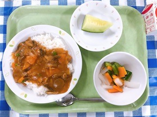 運動会はとてもよい天気のなか、みなさんよくがんばりましたね。今日はうってかわって少し肌寒いですが、夏らしさを感じるくだものです。メロンは5月ころから出回り、8月ころまでが旬です。ほとんどが水分でできていて、体の余分な塩分を出してくれる「カリウム」という栄養が豊富なので、暑い夏にぴったりのくだものです。
