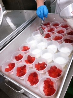 町のいたるところで、あじさいの花が咲いているのを見るようになりました。梅雨の時季の花と言えば、あじさいですよね。今日はそんなあじさいをイメージしたゼリーをつくりました。色鮮やかなあじさいの花は、ぶどうゼリーとクランベリーゼリーでできています。