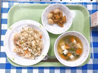 今日は高菜をつかったチャーハンをつくりました。高菜とは、漬物によくつかわれる野菜です。福岡県や熊本県など、九州地方で盛んにつくられています。高菜は成長期に必要な栄養が豊富なうえに、悪いばい菌をやっつける栄養もたくさんふくまれています。