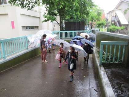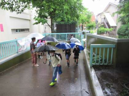 朝から強い雨が降る中、6月の朝のあいさつ声かけ活動を担当する4年生が、正門で「おはようございます!」と声をかけ、登校して来るみなさんを迎えていました。
