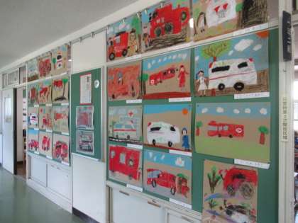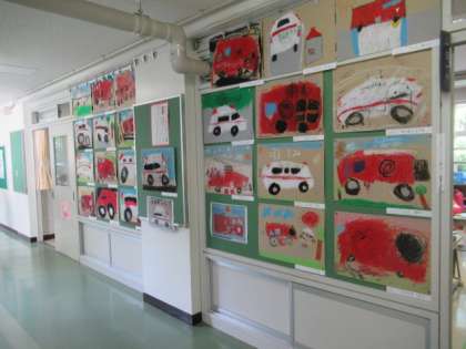 6/7 1年 “はたらく消防の写生会”の作品展示から