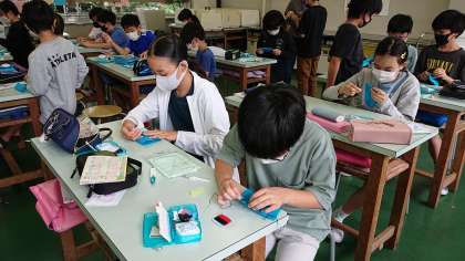 子どもたちが、一生懸命に取り組む中で、「かがり縫いはまぁまぁできるけど、玉留めや玉結びがちょっと難しい。」という声がありました。