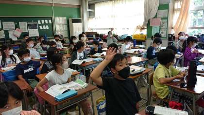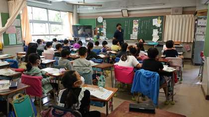 4年生は、2組担任が道徳授業「雨のバスていりゅう所で」を本日1組で、土曜に2組で行います。