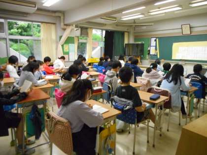 1年生も、歌集にある楽譜を見ながら、一生懸命放送を聴いていました。