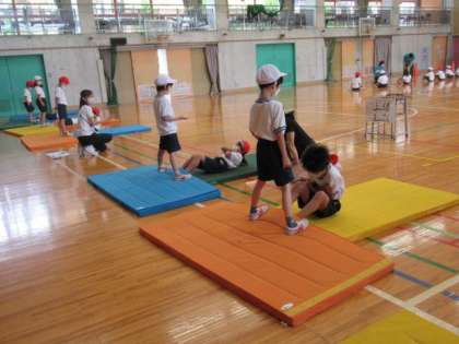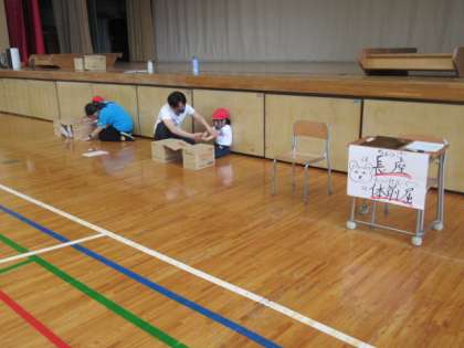 測定を担当するすまいるルームと目の教室の先生方と顔合わせし、測定の仕方・運動の仕方について確認の説明を聴き、早速、それぞれの場に分かれて、測定を行っています。最後まで一生懸命頑張っている姿が印象的です。