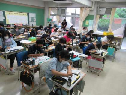 今日の1時間目、6年3組の教室では学習のめあて「文字の大きさと配列に気を付けて書こう。」を意識して、一人一人がめあてに向かって丁寧に筆を運び、俳句「さみだれを あつめて早し 最上川」のすてきな作品を書き上げていました。