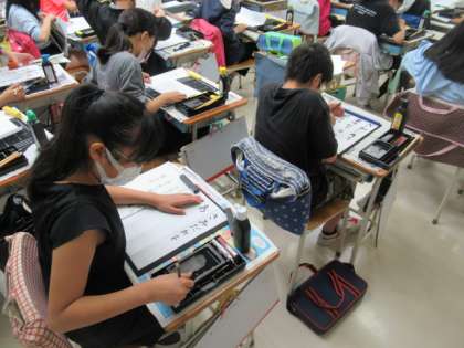 6年生は、毛筆書写の学習で「文字の大きさと配列」に取り組んでいます。