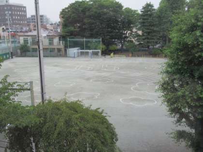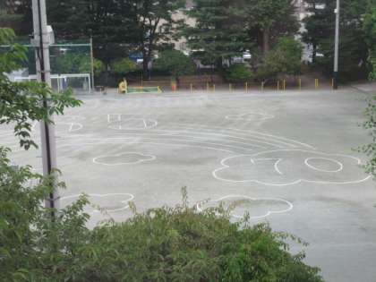 10時30分頃から校庭で、創立65周年記念の航空写真撮影を行います。子どもたちから募集した中から選ばれた作品をもとに、担当業者に人文字の作成に向けて構成を調整していただき、その人文字を撮影する準備が進んでいます。