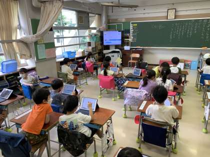 子どもたちの顔を間近で見ながらの授業が、担任にとっては何よりも楽しいものですが万が一に備え、準備をしました。子どもたちがいつでも授業を通して仲間とつながれるようになりました。これから学習用タブレット型端末をたくさん使って、操作などに慣れて行ってほしいと思います。
