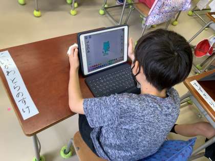 また、本日は、子どもたちと「scratch jr」のアプリを使ってプログラミングの練習もしました。「正しく使うと、楽しいものなんだ!」という意識を持ってもらいたいと思います。