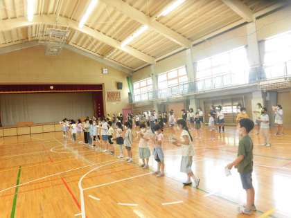 体育館いっぱいに美しい歌声が響きわたりました。こんなにたくさんの人が、わざわざ休み時間に集まって、一生懸命歌ってくれる笹原小学校はすてきだな、と改めて感じました。
