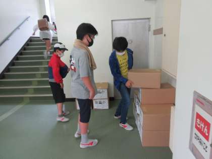 朝、廊下を見ると何やら重そうな段ボールを持った6年生が何人もいました。