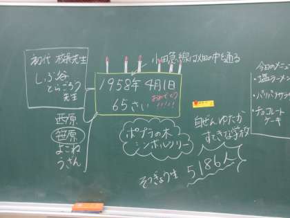 「笹原小学校、お誕生日おめでとう!!!」(3年生より)