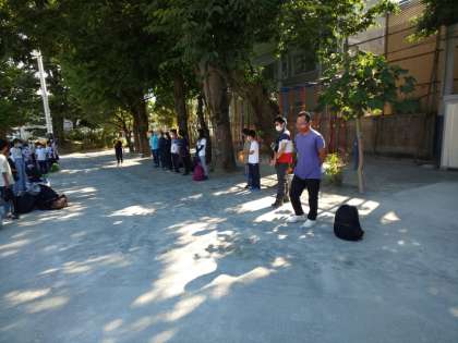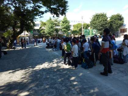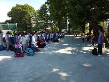 7時半に学校に集合して出発式を行いました。とてもよい天候に恵まれ、子どもたちは元気いっぱいです。