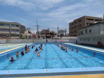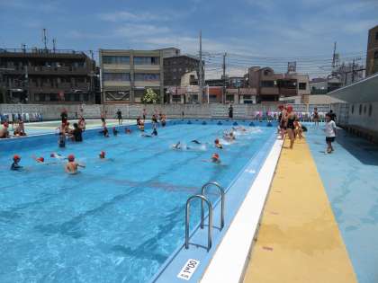子どもたちは久々のプールで、嬉しそうな笑顔が印象的でした。