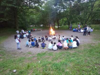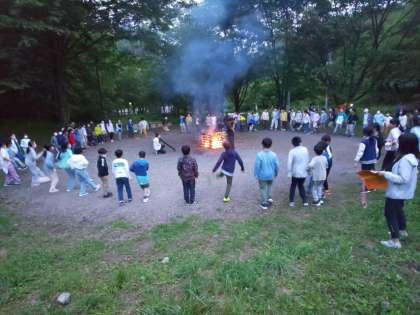 続いて、ファイヤーを囲んで、ゲームとダンスをして、みんなで楽しみました。
