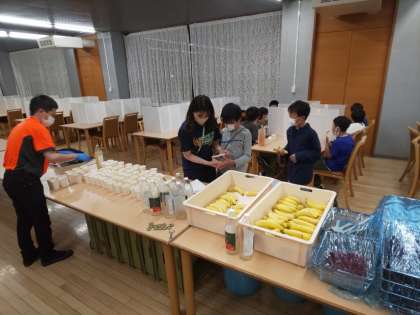 宿舎に戻り、7時半から入浴とバナナ&リンゴジュースの時間です。