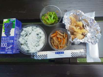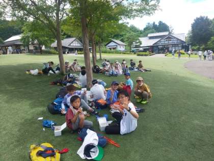 現在、田園プラザの広場でお弁当を楽しんでいます。