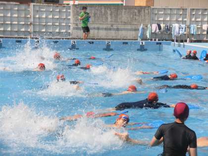 25mのコースごとに泳ぐ練習では、それぞれのレベルに応じて、自分の目標を決めて頑張りました。