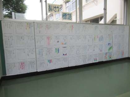 2階渡り廊下掲示コーナーでは、3年生のみなさんの「あいさつ標語」が発表・紹介されています。どの作品にもあいさつについての思いや願いが込められています。