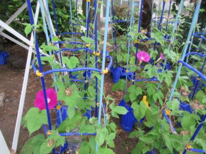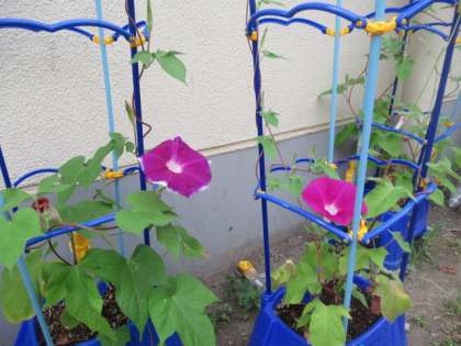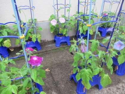 学校の教育活動がお休みでした土曜日・日曜日あたりから、1年生が育てているアサガオの花が咲き始めています。