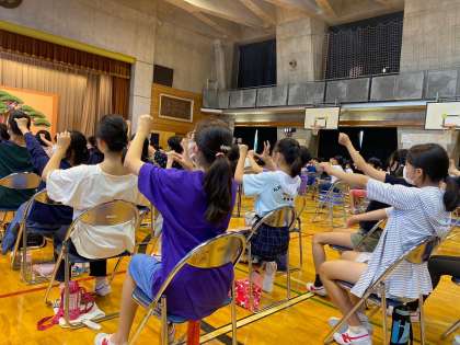 最後はみんなで柿をもいで食べる動作やキノコの動作を真似しました!