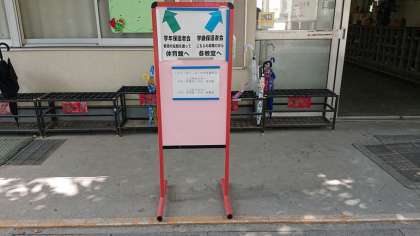 前半の14時から5年は各教室、6年は体育館、後半の14時50分から5年は体育館、6年は各教室でした。
