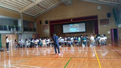 そして、5年は、6月の川場移動教室での子どもたちの頑張りについて、6年は、7月の日光林間学園に向けて説明を体育館で資料やスライドを活用して行いました。