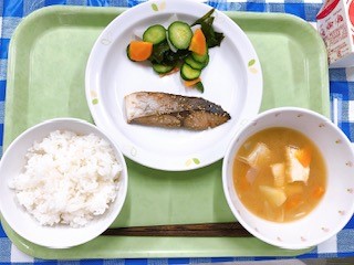 今日は「まごわやさしい給食」です。まごわやさしいとは、日本で昔から食べられている食べ物の、はじめの文字をならべた言葉です。「ま」は豆、「ご」はごま、「わ」はわかめなどの海草、「や」は野菜、「さ」は魚、「し」はしいたけなどのきのこ、「い」はいもです。これらの食べ物を毎日食べてきたからこそ、日本は世界で一番長生きの国になったとも言われています。今日の給食には、「まごわやさいい」がすべて入っているので、探してみてください。