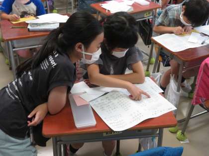 7月19日(火)に総合的な学習の時間で、2時間目に1組で、3時間目に2組で「ハッピープロジェクト」の学習を行いました。