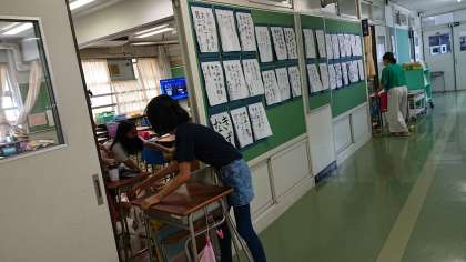 自分たちが使った教室や廊下をピカピカにする姿が見られました。