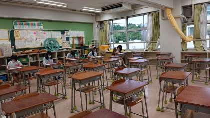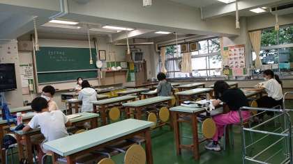 6年2組と6年3組の教室は、夏季休業中は水泳教室の男子更衣室に使用しているため、家庭科室と算数学習室、そして6年1組の教室での学習となります。