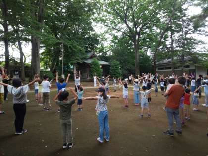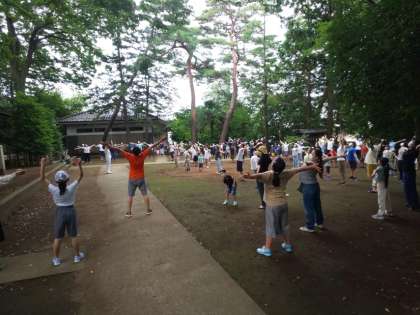 たくさんの子どもたちが家族や友達と参加し、また、用賀小学校の子どもたちと一緒に、31日までの朝のラジオ体操がスタートです。